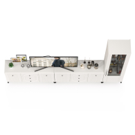 Графичное и стильное сочетание белоснежных фасадов и черных деталей эффектно расставляет акценты на мебели. Геометричный рисунок фрезеровки на белоснежных фасадах даёт развитый светотеневой рисунок. Комплектация состоит из двух комод-ТВ-тумб Валенсия 13.309 и пенала Валенсия 13.218. Конструктивно два комода Валенсия 13.309 объединены в единый блок и образуют широкую и вместительную ТВ-тумбу. Каждый комод с распашными дверками по бокам и тремя выдвижными ящиками в центре - вместительный и функциональный. Можно использовать как широкую ТВ-тумбу. Пенал украшен оригинальной стеклянной вставкой на фасаде, за которой расположены стеклянные полки. За дверкой пенала расположены 6 полок - четыре верхние полочки выполнены из стекла, нижние две из ЛДСП. Универсальная сборка - сторону открывания двери Вы определяете при сборке. Ящики установлены на направляющие скрытого монтажа с доводчиками. Двери закреплены на четырехшарнирных петлях. Установлена мебель на высокие ножки, что делает конструкцию лёгкой и воздушной и практичной в плане уборки. Мебель выполнена из экологически чистой ламинированной ДСП 16 мм, класса эмиссии Е1, детали обработаны ПВХ-кромкой. Фасады из МДФ с матовой ПВХ-плёнкой. Такое решение делает мебель визуально более ""мягкой"", комфортной и расслабляющей, что особенно актуально для спальни. Поставляется в разобранном виде в надёжной упаковке, с комплектом сборочной фурнитуры и инструкцией по сборке.