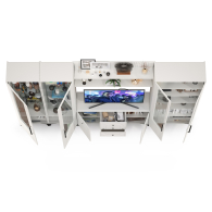 Графичное и стильное сочетание белоснежных фасадов и черных деталей эффектно расставляет акценты на мебели. Геометричный рисунок фрезеровки на белоснежных фасадах даёт развитый светотеневой рисунок. Комплектация состоит из комод-ТВ-тумбы Валенсия 13.309, двух пеналов Валенсия 13.218, серванта Валенсия 13.217 и двух навесных полок Валенсия 16.481. Широкий комод-ТВ-тумбы с распашными дверками по бокам и тремя выдвижными ящиками в центре - вместительный и функциональный. Можно использовать как ТВ-тумбу. Над тумбой расположена навесная открытая полка с задней панелью из МДФ. Полочка и задняя панель соединены металлическими кронштейнами черного цвета, усиливающие конструкцию и служащими креплениями к стене. С одной стороны расположены два пенала объединеные в единый болок, с другой сервант завершает комплектацию и образуя солидную стеночку для гостиной. Двухдверный сервант Валенсия 13.217 оснащен стеклянными вставками в дверях. Можно использовать как книжный шкаф и как витрину для наград, фотографий, поделок или элементов декора. За распашными дверями серванта расположены 6 полок из ЛДСП. Каждый пенал (в комплектации 2 пенала) украшен оригинальной стеклянной вставкой на фасаде, за которой расположены стеклянные полки. За дверкой каждого пенала расположены 6 полок - четыре верхние полочки выполнены из стекла, нижние две из ЛДСП. Универсальная сборка - сторону открывания двери Вы определяете при сборке. Ящики установлены на направляющие скрытого монтажа с доводчиками. Двери закреплены на четырехшарнирных петлях. Установлена мебель на высокие ножки, что делает конструкцию лёгкой и воздушной и практичной в плане уборки. Мебель выполнена из экологически чистой ламинированной ДСП 16 мм, класса эмиссии Е1, детали обработаны ПВХ-кромкой. Фасады из МДФ с матовой ПВХ-плёнкой. Такое решение делает мебель визуально более ""мягкой"", комфортной и расслабляющей, что особенно актуально для спальни. Поставляется в разобранном виде в надёжной упаковке, с комплектом сборочной фурнитуры и инструкцией по сборке.