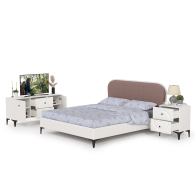 Графичное и стильное сочетание белоснежных фасадов и черных деталей эффектно расставляет акценты на мебели. Геометричный рисунок фрезеровки на белоснежных фасадах даёт развитый светотеневой рисунок. Комплектация состоит из двуспальной кровати с мягкой спинкой Валенсия 11.36.02, прикроватной тумбы Валенсия 13.291 и ТВ-тумбы Валенсия 16.45. Выбирая двуспальную кровать Валенсия 11.36.02 с мякгой спинкой со спальным местом 1600х2000 мм, Вы выбираете крепкий сон и уют. Декоративное изголовье кровати выполнен с мягким элементом. Обивка кровати Валенсия 11.36.02 выполнена из модной, удобной в эксплуатации ткани Велутто. Ортопедическое основание 1600х2000 мм. с гнутоклееными ламелями входит в комплект, матрас приобретаются отдельно. Углубление под матрас - 100 мм. Рекомендованная высота матраса от 100 до 220 мм. Максимально допустимая нагрузка на 1 спальное место - 100 кг. Тумба прикроватная Валенсия 13.291 оборудована двумя удобными выдвижными ящикам. Тумба под ТВ Валенсия 16.45 оснащена двумя выдвижными ящиками по центру и нишами с полкой за распашными дверками по краям. Ящики установлены на направляющие скрытого монтажа с доводчиками. Двери закреплены на четырехшарнирных петлях. Мебель установлена на высокие ножки, что делает конструкцию лёгкой и воздушной и практичной в плане уборки. Мебель выполнена из экологически чистой ламинированной ДСП 16 мм, класса эмиссии Е1, детали обработаны ПВХ-кромкой. Фасады из МДФ с матовой ПВХ-плёнкой. Такое решение делает мебель визуально более "мягкой", комфортной и расслабляющей, что особенно актуально для спальни.