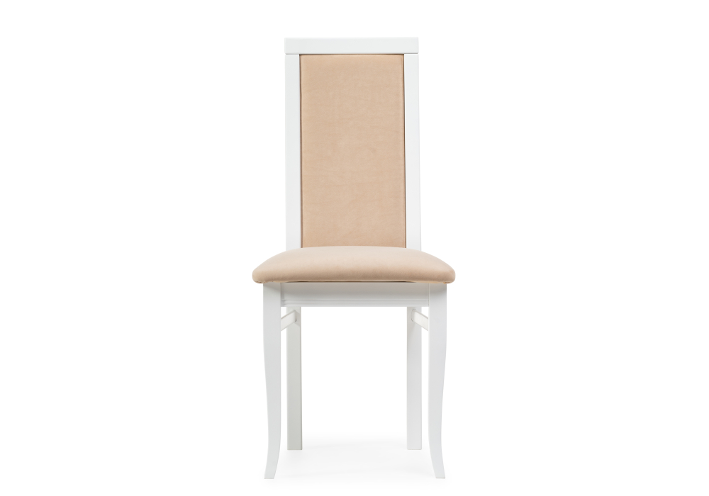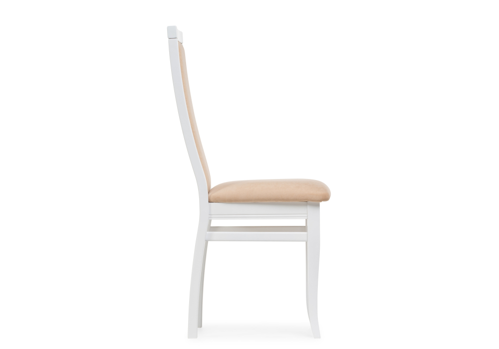 Материал каркаса - Массив бука; Материал сиденья - Велюр; Материал ножек - Массив бука; Материал обивки - Велюр; Цвет каркаса - Белый; Цвет ножек - Белый; Ширина - 45; Глубина - 50; Высота - 100; Ширина сиденья - 40; Глубина сиденья - 39; Высота сиденья - 49.
