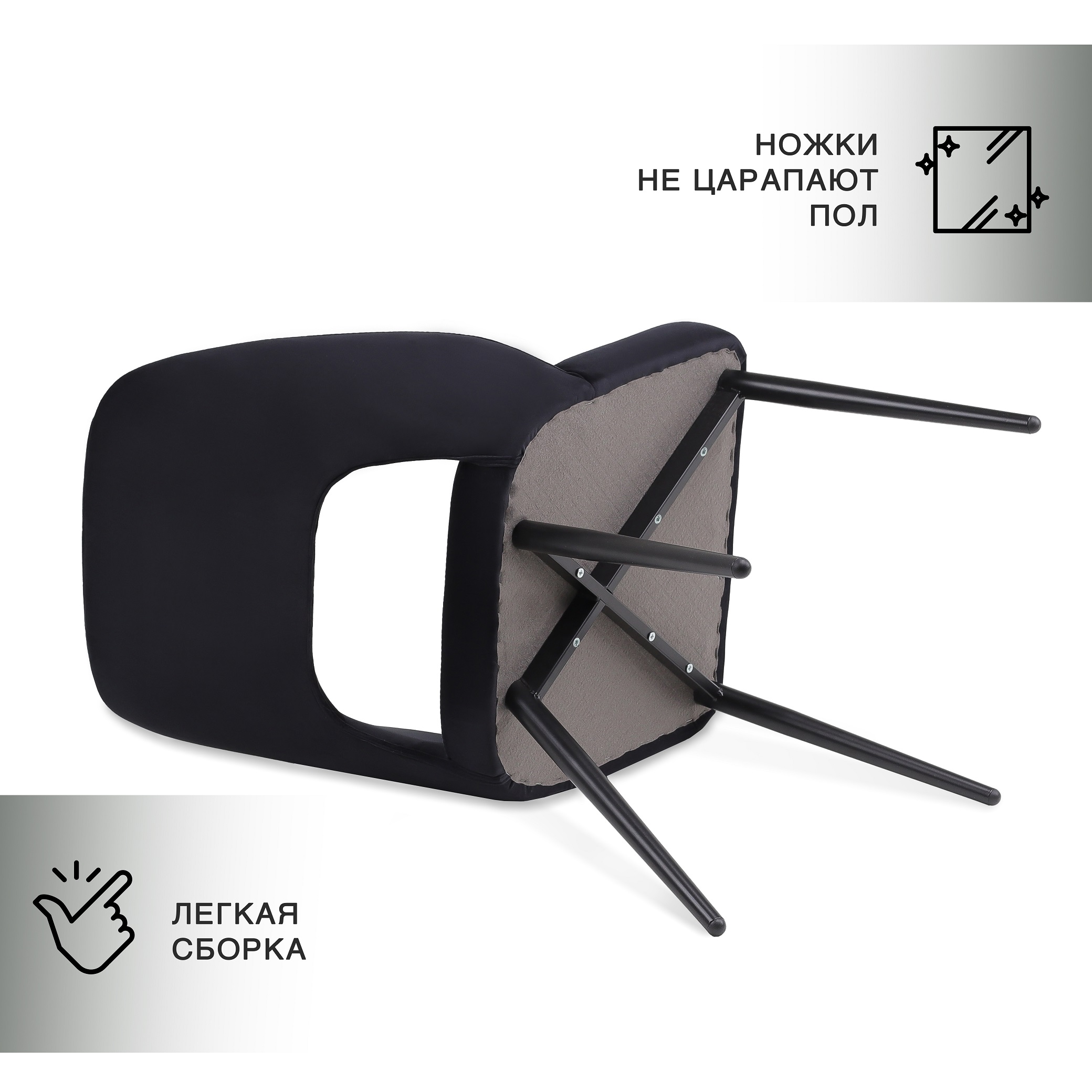 Металлические ножки оборудованы специальными наконечниками, благодаря которым не будут оставаться царапины на поверхности пола.