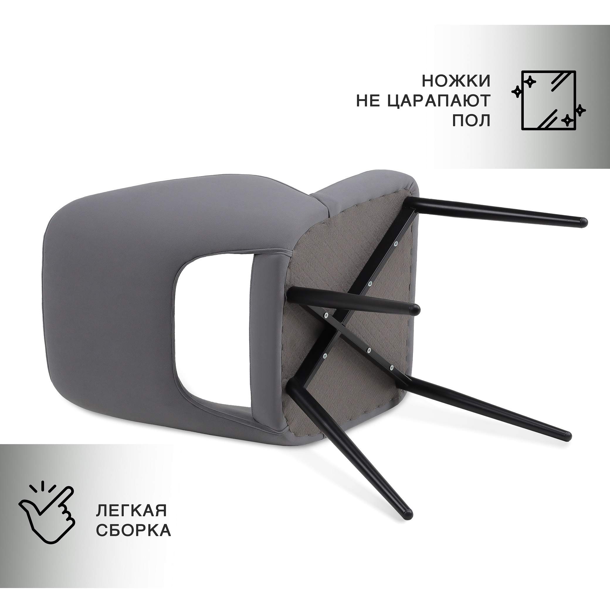 Металлические ножки оборудованы специальными наконечниками, благодаря которым не будут оставаться царапины на поверхности пола.