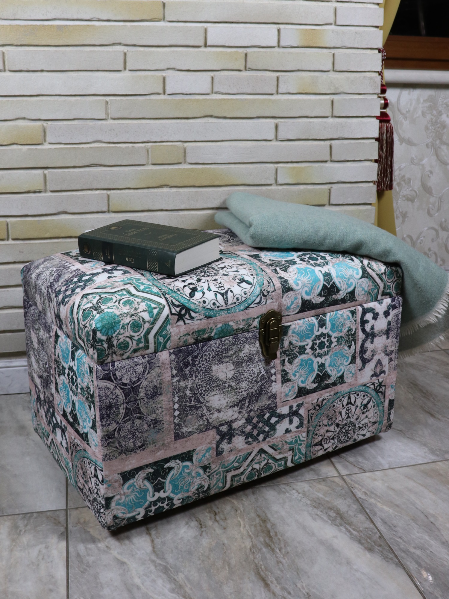 Пластиковые ножки, на которых стоит сундук, не царапают пол. Но и переносить его тоже достаточно легко - вес сундука всего около 8 кг. Пуфик в прихожую, коридор, в спальню, в гостинную, в детскую, в кухню, в зал прекрасно впишется в любой интерьер офиса, дома или дачи.