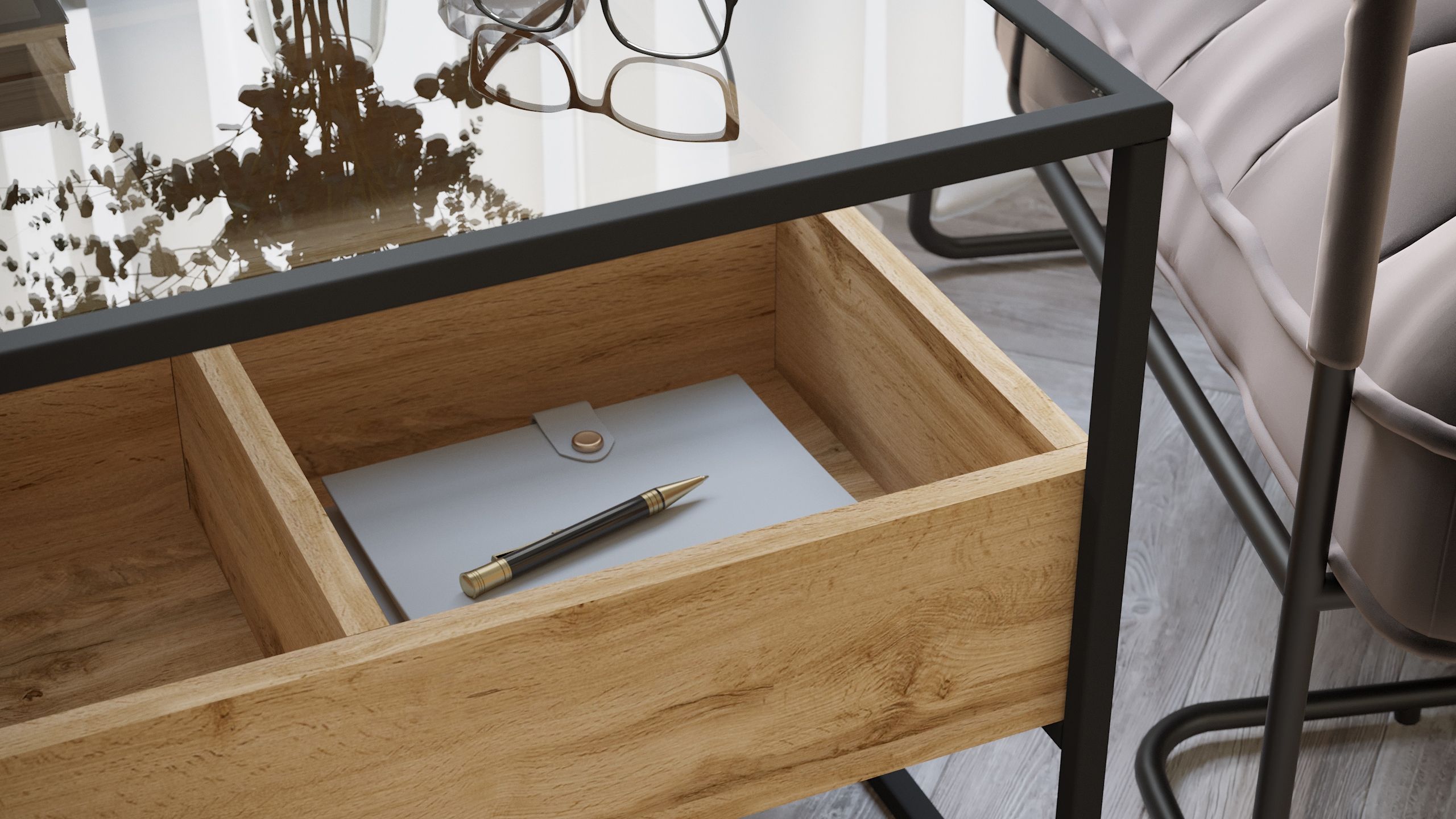 Журнальный стол «Кассо» выполнен в современном лаконичном стиле и уместно дополнит интерьер гостиной. Стильный столик приковывает внимание прежде всего своим исполнением: комбинацией материалов. Стеклянная столешница из тонированного закаленного стекла в сером цвете дополнена ячейками из ЛДСП для удобного хранения подручных вещей. А прочный металлический каркас толщиной 15 мм обеспечивает высокую прочность и устойчивость. Цветовое решение столика можно выбрать из вариантов предложенных нашей фабрикой. Дизайнерский прием - возможность комбинировать с другими предметами интерьера из серии ""Кассо"", позволяя воссоздать атмосферу истинного комфорта и удобства.