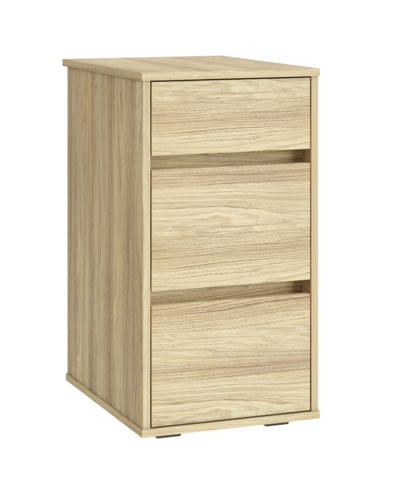 Тумба Оскар ОС-10 выполнена в минималистичном дизайне, что придаст лаконичность вашему интерьеру. Оснащена тремя ящиками на телескопических направляющих полного выдвижения без доводчиков. Функциональная тумба для рабочего места станет неотъемлемой частью Вашего дома, так как вместительные ящики полного выдвижения позволят хранить в них дорогие для Вас вещи. Отсутствие лицевой фурнитуры подчеркнет индивидуальность интерьера Вашего дома, детской комнаты, а также послужит функциональным местом для хранения документов в рабочем кабинете. Тумба с ящиками - это удобное дополнение к письменному или компьютерному столу, прекрасно подойдет к столам ОС-22, ОС-25. Регулируемые опоры позволяют компенсировать возможные неровности пола.