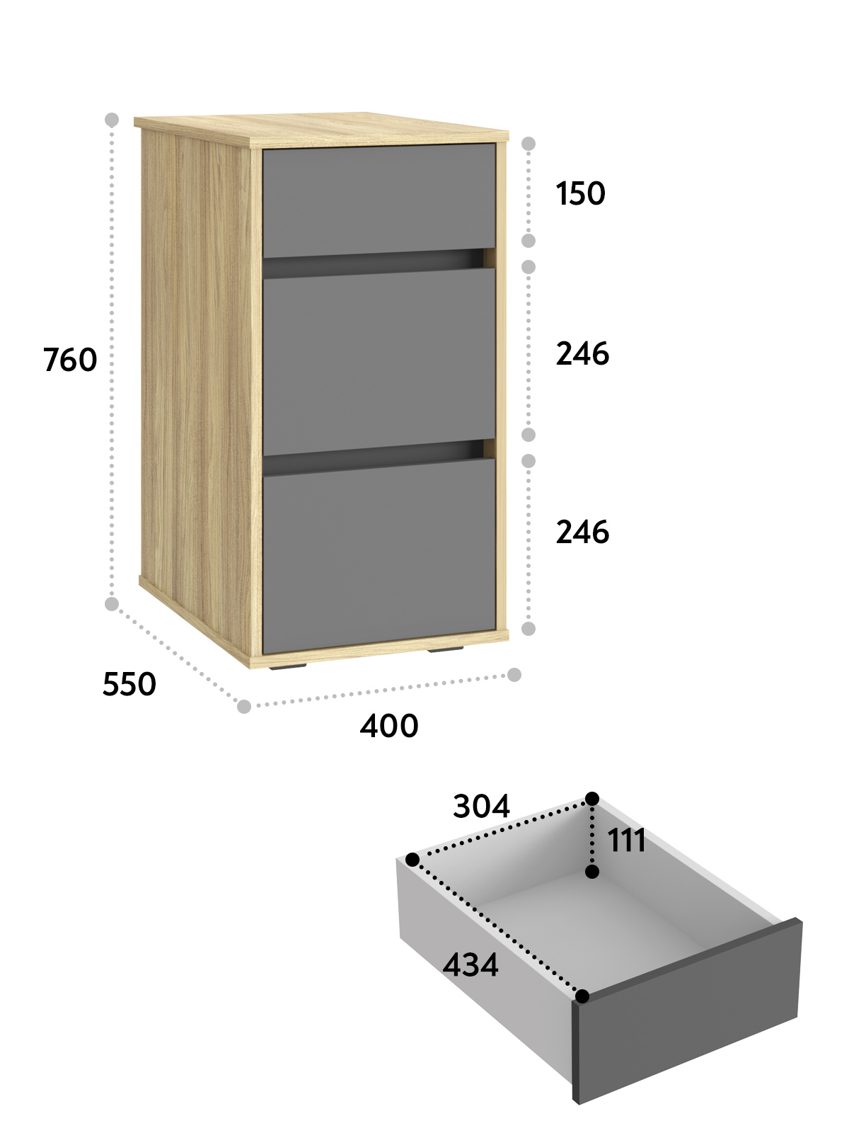 Тумба Оскар ОС-10 выполнена в минималистичном дизайне, что придаст лаконичность вашему интерьеру. Оснащена тремя ящиками на телескопических направляющих полного выдвижения без доводчиков. Функциональная тумба для рабочего места станет неотъемлемой частью Вашего дома, так как вместительные ящики полного выдвижения позволят хранить в них дорогие для Вас вещи. Отсутствие лицевой фурнитуры подчеркнет индивидуальность интерьера Вашего дома, детской комнаты, а также послужит функциональным местом для хранения документов в рабочем кабинете. Тумба с ящиками - это удобное дополнение к письменному или компьютерному столу, прекрасно подойдет к столам ОС-22, ОС-25. Регулируемые опоры позволяют компенсировать возможные неровности пола.