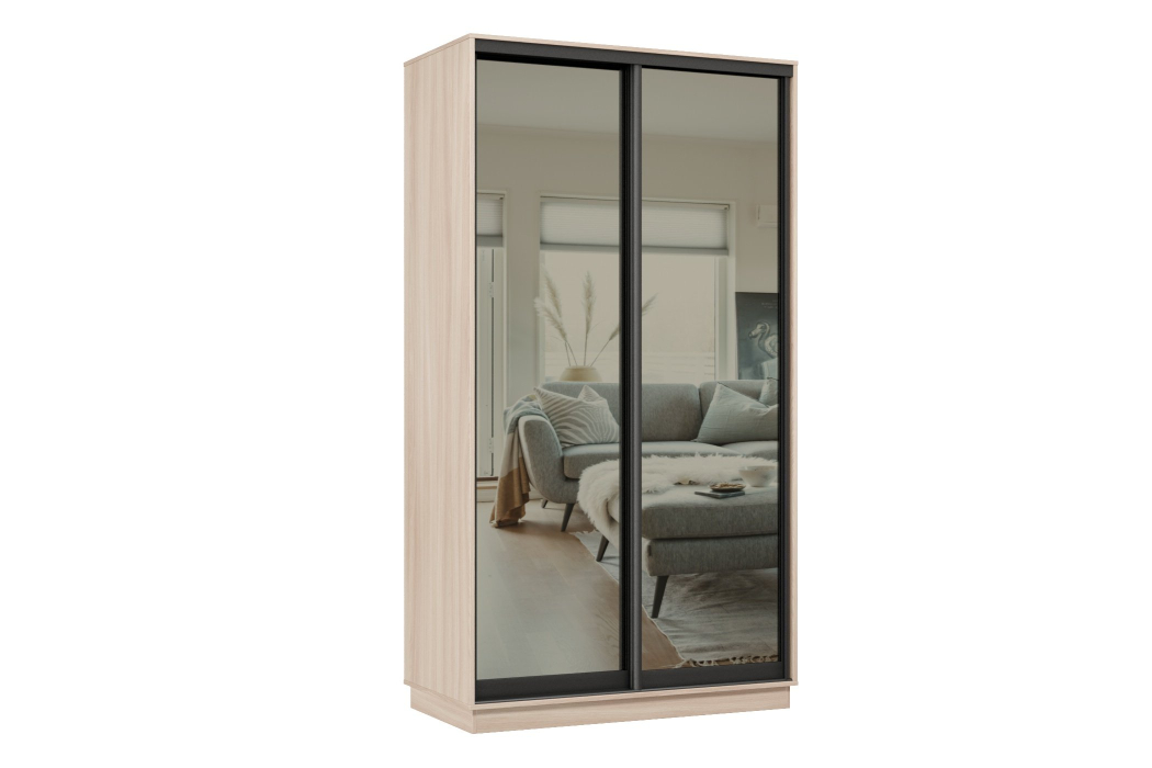 Отзывы о Столплит Шкаф-купе Премьер МИНИ 02 (01ЗГ;01ЗГ) фасады зеркало графит/двухдверный/Профиль чёрный муар Ясень шимо светлый