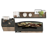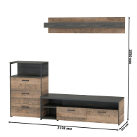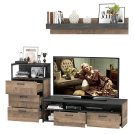 Брутальный декор и контрастная кромка, как и лицевая фурнитура придаёт мебели индустриальную эстетику. Комплектация состоит из тумбы под ТВ Трувор 13.70, комода Трувор 13.307.02 и полки навесной Трувор 15.60. Тумба оснащена широкой нишей сверху и 2 выдвижными ящиками и небольшой нишей снизу. Столешница тумбы имеет по центру кабель-канал, что значительно упрощает подключение техники и проблемы с проводами. На нижних кромках опор тумбы предусмотрены пластиковые подпятники для защиты поверхности пола от механических повреждений. Тумба под ТВ Трувор 13.70 имеет универсальную сборку, что позволяет расположить ящики как справа, так и слева. Вместительный и аккуратный комод оснащен 3 выдвижными ящиками и открытой нишей сверху. На нижних кромках опор комода предусмотрены пластиковые подпятники для защиты поверхности пола от механических повреждений. Металлические элементы делают эту мебель надёжной, аутентичной и функциональной. Классическая навесная открытая полка с задней панелью расположена над тумбой. Полка располагается по центру панели и оборудована бортиком. Полку Трувор 15.60 можно использовать как книжную, а также для размещения элементов декора, поделок и фотографий. Полка имеет с обратной стороны панели скрытые крепленния. Максимальная нагрузка на полку составляет 3 кг. Направляющие выдвижных ящиков скрытого монтажа оснащены доводчиками, что обеспечивают повышенный комфорт и надёжность. Выполнена мебель из ламинированной ДСП 16 мм и металлических элементов, торцы окромлены ПХВ плёнкой 0,4 мм. В производстве мебели использована современная фурнитура, отличающаяся высокой надёжностью и долговечностью. Поставляется в разобранном виде в надёжной упаковке, с комплектом сборочной фурнитуры и инструкцией по сборке.