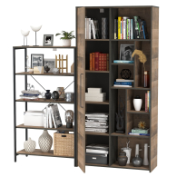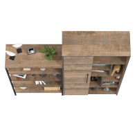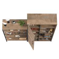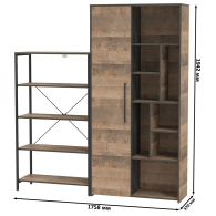 Брутальный декор и контрастная кромка, как и лицевая фурнитура придаёт мебели индустриальную эстетику. Комплектация состоит из шкафа-стеллажа Трувор 13.206 и стеллажа Трувор 13.151.01. Устойчивый стеллаж Трувор 13.151.01 с 4 полками с возможность доступа с любой стороны. Металлические стойки с регулируемыми опорами делают этот стеллаж надёжным, аутентичнымй и функциональным. Использование крестовых металлических стяжек вместо задней стенки делает конструкцию лёгкой, воздушной и устойчивой к боковым нагрузкам. Шкаф-стеллаж состоит из двух отделений - с одной стороны с дверкой, с другой с открытыми полками. За распашной дверкой расположены 4 полки, дверь оборудована широкой ручкой. Открытое отделение с открытыми имеет сверху и снизу большие ниши и по центру 6 ниш поменьше. Шкаф-стеллаж Трувор 13.206 имеет универсальную сборку, сторону открывания двери и ее расположение Вы определяете при сборке. Четырёхшарнирные петли двери оснащены доводчиками, что обеспечивают повышенный комфорт и надёжность. На нижних кромках шкафа предусмотрены пластиковые подпятники для защиты поверхности пола от механических повреждений. Выполнена мебель из ламинированной ДСП 16 мм и металлических элементов, торцы окромлены ПХВ плёнкой 0,4 мм. В производстве мебели использована современная фурнитура, отличающаяся высокой надёжностью и долговечностью. Поставляется в разобранном виде в надёжной упаковке, с комплектом сборочной фурнитуры и инструкцией по сборке.