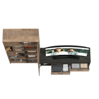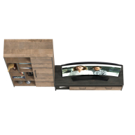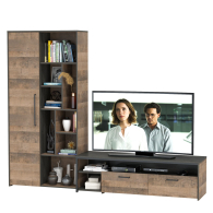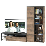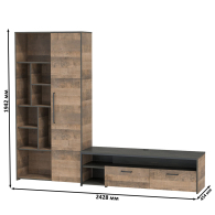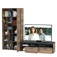 Брутальный декор и контрастная кромка, как и лицевая фурнитура придаёт мебели индустриальную эстетику. Комплектация состоит из тумбы под ТВ Трувор 13.70 и шкафа-стеллажа Трувор 13.206. Широкая низкая тумба Трувор 13.70 оснащена широкой нишей сверху и 2 выдвижными ящиками и небольшой нишей снизу. Столешница тумбы имеет по центру кабель-канал, что значительно упрощает подключение техники и проблемы с проводами. Направляющие выдвижных ящиков скрытого монтажа оснащены доводчиками, что обеспечивают повышенный комфорт и надёжность. На нижних кромках опор тумбы предусмотрены пластиковые подпятники для защиты поверхности пола от механических повреждений. Тумба под ТВ Трувор 13.70 имеет универсальную сборку, что позволяет расположить ящики как справа, так и слева. Металлические элементы делают эту мебель надёжной, аутентичной и функциональной. Шкаф-стеллаж состоит из двух отделений - с одной стороны с дверкой, с другой с открытыми полками. За распашной дверкой расположены 4 полки, дверь оборудована широкой ручкой. Открытое отделение с открытыми имеет сверху и снизу большие ниши и по центру 6 ниш поменьше. Шкаф-стеллаж Трувор 13.206 имеет универсальную сборку, сторону открывания двери и ее расположение Вы определяете при сборке. Четырёхшарнирные петли двери оснащены доводчиками, что обеспечивают повышенный комфорт и надёжность. На нижних кромках шкафа предусмотрены пластиковые подпятники для защиты поверхности пола от механических повреждений. Выполнена мебель из ламинированной ДСП 16 мм и металлических элементов, торцы окромлены ПХВ плёнкой 0,4 мм. В производстве мебели использована современная фурнитура, отличающаяся высокой надёжностью и долговечностью. Поставляется в разобранном виде в надёжной упаковке, с комплектом сборочной фурнитуры и инструкцией по сборке.