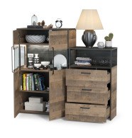 Комод с витриной с 2 дверками и подсветкой и комод с ящиками Трувор - современная и практичная мебель в индустриальном стиле лофт.