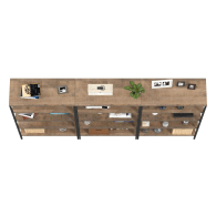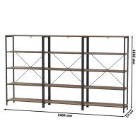 Брутальный декор и контрастная кромка, как и лицевая фурнитура придаёт мебели индустриальную эстетику. Комплектация состоит из трех стеллажей Трувор 13.151.01. Устойчивый стеллаж Трувор 13.151.01 с 4 полками с возможность доступа с любой стороны. В комп. 3 стеллажа. Металлические стойки с регулируемыми опорами делают этот стеллаж надёжным, аутентичнымй и функциональным. Использование крестовых металлических стяжек вместо задней стенки делает конструкцию лёгкой, воздушной и устойчивой к боковым нагрузкам. Выполнена мебель из ламинированной ДСП 16 мм и металлических элементов, торцы окромлены ПХВ плёнкой 0,4 мм. В производстве мебели использована современная фурнитура, отличающаяся высокой надёжностью и долговечностью. Поставляется в разобранном виде в надёжной упаковке, с комплектом сборочной фурнитуры и инструкцией по сборке.