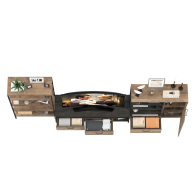 Брутальный декор и контрастная кромка, как и лицевая фурнитура придаёт мебели индустриальную эстетику. Комплектация состоит из тумбы под ТВ Трувор 13.70, стеллажа Трувор 13.151.01 и комода с дверкой Трувор 13.307.01. Тумба Трувор 13.70 оснащена широкой нишей сверху и 2 выдвижными ящиками и небольшой нишей снизу. Столешница тумбы имеет по центру кабель-канал, что значительно упрощает подключение техники и проблемы с проводами. Направляющие выдвижных ящиков скрытого монтажа оснащены доводчиками, что обеспечивают повышенный комфорт и надёжность. На нижних кромках опор тумбы предусмотрены пластиковые подпятники для защиты поверхности пола от механических повреждений. Тумба под ТВ Трувор 13.70 имеет универсальную сборку, что позволяет расположить ящики как справа, так и слева. Металлические элементы делают эту мебель надёжной, аутентичной и функциональной. Вместительный комод оснащен 2 полками за распашной дверкой с одной стороны и 3 открытыми нишами и выдвижным ящиком снизу с другой. Направляющие выдвижных ящиков скрытого монтажа и четырёхшарнирные петли дверки оснащены доводчиками, что обеспечивают повышенный комфорт и надёжность. Комод Трувор 13.307.01 имеет универсальную сборку, что позволяет расположить дверку как справа, так и слева. На нижних кромках опор комода предусмотрены пластиковые подпятники для защиты поверхности пола от механических повреждений. Металлические элементы делают эту мебель надёжной, аутентичной и функциональной. Устойчивый стеллаж Трувор 13.151.01 с 4 полками с возможность доступа с любой стороны. Металлические стойки с регулируемыми опорами делают этот стеллаж надёжным, аутентичнымй и функциональным. Использование крестовых металлических стяжек вместо задней стенки делает конструкцию лёгкой, воздушной и устойчивой к боковым нагрузкам. Выполнена мебель из ламинированной ДСП 16 мм и металлических элементов, торцы окромлены ПХВ плёнкой 0,4 мм. В производстве мебели использована современная фурнитура, отличающаяся высокой надёжностью и долговечностью. Поставляется в разобранном виде в надёжной упаковке, с комплектом сборочной фурнитуры и инструкцией по сборке.