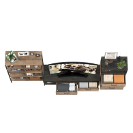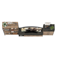 Брутальный декор и контрастная кромка, как и лицевая фурнитура придаёт мебели индустриальную эстетику. Комплектация состоит из тумбы под ТВ Трувор 13.70, стеллажа Трувор 13.151.02 и комода с ящиками Трувор 13.307.02. Тумба Трувор 13.70 оснащена широкой нишей сверху и 2 выдвижными ящиками и небольшой нишей снизу. Столешница тумбы имеет по центру кабель-канал, что значительно упрощает подключение техники и проблемы с проводами. Тумба под ТВ Трувор 13.70 имеет универсальную сборку, что позволяет расположить ящики как справа, так и слева. Аккуратный комод оснащен 3 выдвижными ящиками и открытой нишей сверху. Стеллаж Трувор 13.151.02 с 8 полками, верхние 6 с возможность доступа с любой стороны. Нижняя ниша имеют заднюю панель. Металлические стойки с регулируемыми опорами. На нижних кромках опор предусмотрены пластиковые подпятники для защиты поверхности пола от механических повреждений. Направляющие выдвижных ящиков скрытого монтажа оснащены доводчиками, что обеспечивают повышенный комфорт и надёжность. Металлические элементы делают эту мебель надёжной, аутентичной и функциональной. Выполнена мебель из ламинированной ДСП 16 мм и металлических элементов, торцы окромлены ПХВ плёнкой 0,4 мм. В производстве мебели использована современная фурнитура, отличающаяся высокой надёжностью и долговечностью. Поставляется в разобранном виде в надёжной упаковке, с комплектом сборочной фурнитуры и инструкцией по сборке.