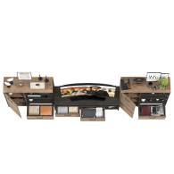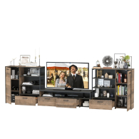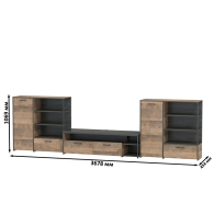 Брутальный декор и контрастная кромка, как и лицевая фурнитура придаёт мебели индустриальную эстетику. Комплектация состоит из тумбы под ТВ Трувор 13.70 и двух комодов с дверкой Трувор 13.307.01. Тумба Трувор 13.70 оснащена широкой нишей сверху и 2 выдвижными ящиками и небольшой нишей снизу. Столешница тумбы имеет по центру кабель-канал, что значительно упрощает подключение техники и проблемы с проводами. Тумба под ТВ Трувор 13.70 имеет универсальную сборку, что позволяет расположить ящики как справа, так и слева. Вместительный комод оснащен 2 полками за распашной дверкой с одной стороны и 3 открытыми нишами и выдвижным ящиком снизу с другой. В комп. 2 ед.. Комод Трувор 13.307.01 имеет универсальную сборку, что позволяет расположить дверку как справа, так и слева. На нижних кромках опор предусмотрены пластиковые подпятники для защиты поверхности пола от механических повреждений. Металлические элементы делают эту мебель надёжной, аутентичной и функциональной. Направляющие выдвижных ящиков скрытого монтажа и четырёхшарнирные петли дверки оснащены доводчиками, что обеспечивают повышенный комфорт и надёжность. Выполнена мебель из ламинированной ДСП 16 мм и металлических элементов, торцы окромлены ПХВ плёнкой 0,4 мм. В производстве мебели использована современная фурнитура, отличающаяся высокой надёжностью и долговечностью. Поставляется в разобранном виде в надёжной упаковке, с комплектом сборочной фурнитуры и инструкцией по сборке.