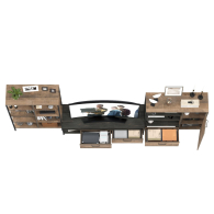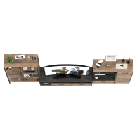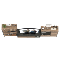 Брутальный декор и контрастная кромка, как и лицевая фурнитура придаёт мебели индустриальную эстетику. Комплектация состоит из тумбы под ТВ Трувор 13.70, стеллажа Трувор 13.151.02 и комода с дверкой Трувор 13.307.01. Тумба Трувор 13.70 оснащена широкой нишей сверху и 2 выдвижными ящиками и небольшой нишей снизу. Столешница тумбы имеет по центру кабель-канал, что значительно упрощает подключение техники и проблемы с проводами. Тумба под ТВ Трувор 13.70 имеет универсальную сборку, что позволяет расположить ящики как справа, так и слева. Вместительный комод оснащен 2 полками за распашной дверкой с одной стороны и 3 открытыми нишами и выдвижным ящиком снизу с другой. Комод Трувор 13.307.01 имеет универсальную сборку, что позволяет расположить дверку как справа, так и слева. Направляющие выдвижных ящиков скрытого монтажа и четырёхшарнирные петли дверки оснащены доводчиками, что обеспечивают повышенный комфорт и надёжность. На нижних кромках опор предусмотрены пластиковые подпятники для защиты поверхности пола от механических повреждений. Металлические элементы делают эту мебель надёжной, аутентичной и функциональной. Стеллаж Трувор 13.151.02 с 8 полками, верхние 6 с возможность доступа с любой стороны. Нижняя ниша имеют заднюю панель. Металлические стойки с регулируемыми опорами делают этот стеллаж надёжным, аутентичнымй и функциональным. Выполнена мебель из ламинированной ДСП 16 мм и металлических элементов, торцы окромлены ПХВ плёнкой 0,4 мм. В производстве мебели использована современная фурнитура, отличающаяся высокой надёжностью и долговечностью. Поставляется в разобранном виде в надёжной упаковке, с комплектом сборочной фурнитуры и инструкцией по сборке.