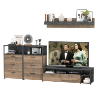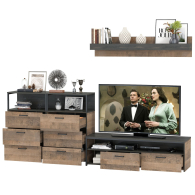 Тумба под ТВ и для аппаратуры с навесной полкой с два комода с ящиками Трувор - современная и практичная мебель в индустриальном стиле лофт.