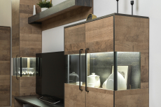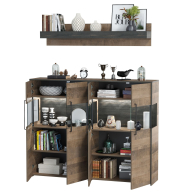 Два комода с витриной с подсветкой и навесная полка Трувор - современная и практичная мебель в индустриальном стиле лофт.
