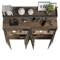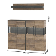 Брутальный декор и контрастная кромка, как и лицевая фурнитура придаёт мебели индустриальную эстетику. Комплектация состоит из полки навесной Трувор 15.60 и двух комодов с витриной Трувор 13.306. В комп. два комода с витринами Трувор 13.306. За распашными дверками каждого комода со стеклянными вставками расположены 3 полки. Центральная часть комодов имеет витрину с подсветкой. Светодиодная подсветка в витрине со стеклом — эффектно подчёркивает аксессуары. На нижних кромках опор комодов предусмотрены пластиковые подпятники для защиты поверхности пола от механических повреждений. Четырёхшарнирные петли дверей оснащены доводчиками, что обеспечивают повышенный комфорт и надёжность. Над комодом располагается классическая навесная открытая полка с задней панелью. Полка располагается по центру панели и оборудована бортиком. Полку Трувор 15.60 можно использовать как книжную, а также для размещения элементов декора, поделок и фоторгафий. Полка имеет с обратной стороны панели скрытые крепленния. Максимальная нагрузка на полку составляет 3 кг. Выполнена мебель из ламинированной ДСП 16 мм и металлических элементов, торцы окромлены ПХВ плёнкой 0,4 мм. В производстве мебели использована современная фурнитура, отличающаяся высокой надёжностью и долговечностью. Поставляется в разобранном виде в надёжной упаковке, с комплектом сборочной фурнитуры и инструкцией по сборке.