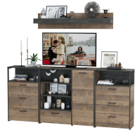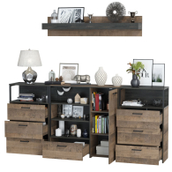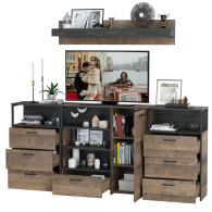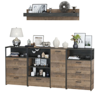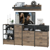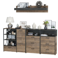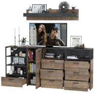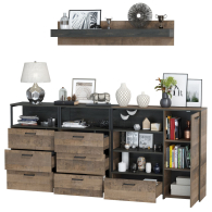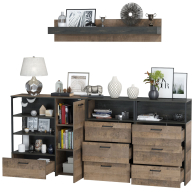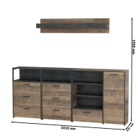 Два комода с ящиками с навесной полкой и комод с ящиком и дверкой в гостиную Трувор - современная и практичная мебель в индустриальном стиле лофт.