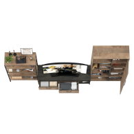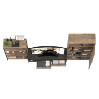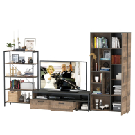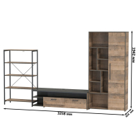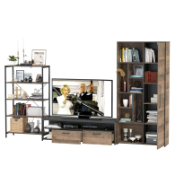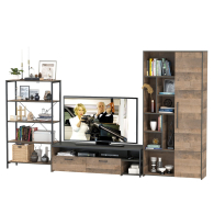 Брутальный декор и контрастная кромка, как и лицевая фурнитура придаёт мебели индустриальную эстетику. Комплектация состоит из тумбы под ТВ Трувор 13.70, стеллажа Трувор 13.151.01 и шкафа-стеллажа Трувор 13.206. Тумба Трувор 13.70 оснащена широкой нишей сверху и 2 выдвижными ящиками и небольшой нишей снизу. Столешница тумбы имеет по центру кабель-канал, что значительно упрощает подключение техники и проблемы с проводами. Направляющие выдвижных ящиков скрытого монтажа оснащены доводчиками, что обеспечивают повышенный комфорт и надёжность. На нижних кромках опор тумбы предусмотрены пластиковые подпятники для защиты поверхности пола от механических повреждений. Тумба под ТВ Трувор 13.70 имеет универсальную сборку, что позволяет расположить ящики как справа, так и слева. Устойчивый стеллаж Трувор 13.151.01 с 4 полками с возможность доступа с любой стороны. Использование крестовых металлических стяжек вместо задней стенки делает конструкцию лёгкой, воздушной и устойчивой к боковым нагрузкам. Шкаф-стеллаж состоит из двух отделений - с одной стороны с дверкой, с другой с открытыми полками. За распашной дверкой расположены 4 полки, дверь оборудована широкой ручкой. Открытое отделение с открытыми имеет сверху и снизу большие ниши и по центру 6 ниш поменьше. Шкаф-стеллаж Трувор 13.206 имеет универсальную сборку, сторону открывания двери и ее расположение Вы определяете при сборке. Четырёхшарнирные петли двери оснащены доводчиками, что обеспечивают повышенный комфорт и надёжность. На нижних кромках шкафа предусмотрены пластиковые подпятники для защиты поверхности пола от механических повреждений. Металлические элементы делают эту мебель надёжной, аутентичной и функциональной. Выполнена мебель из ламинированной ДСП 16 мм и металлических элементов, торцы окромлены ПХВ плёнкой 0,4 мм. В производстве мебели использована современная фурнитура, отличающаяся высокой надёжностью и долговечностью. Поставляется в разобранном виде в надёжной упаковке, с комплектом сборочной фурнитуры и инструкцией по сборке.