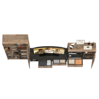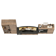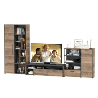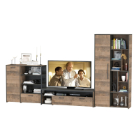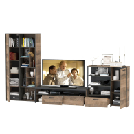 Брутальный декор и контрастная кромка, как и лицевая фурнитура придаёт мебели индустриальную эстетику. Комплектация состоит из тумбы под ТВ Трувор 13.70, комода с дверкой Трувор 13.307.01 и шкафа-стеллажа Трувор 13.206. Тумба Трувор 13.70 оснащена широкой нишей сверху и 2 выдвижными ящиками и небольшой нишей снизу. Столешница тумбы имеет по центру кабель-канал, что значительно упрощает подключение техники и проблемы с проводами. Тумба под ТВ Трувор 13.70 имеет универсальную сборку, что позволяет расположить ящики как справа, так и слева. Вместительный комод оснащен 2 полками за распашной дверкой с одной стороны и 3 открытыми нишами и выдвижным ящиком снизу с другой. Комод Трувор 13.307.01 имеет универсальную сборку, что позволяет расположить дверку как справа, так и слева. Направляющие выдвижных ящиков скрытого монтажа и четырёхшарнирные петли дверки оснащены доводчиками, что обеспечивают повышенный комфорт и надёжность. Металлические элементы делают эту мебель надёжной, аутентичной и функциональной. Шкаф-стеллаж состоит из двух отделений - с одной стороны с дверкой, с другой с открытыми полками. За распашной дверкой расположены 4 полки, дверь оборудована широкой ручкой. Открытое отделение с открытыми имеет сверху и снизу большие ниши и по центру 6 ниш поменьше. Шкаф-стеллаж Трувор 13.206 имеет универсальную сборку, сторону открывания двери и ее расположение Вы определяете при сборке. Четырёхшарнирные петли двери оснащены доводчиками, что обеспечивают повышенный комфорт и надёжность. На нижних кромках опор предусмотрены пластиковые подпятники для защиты поверхности пола от механических повреждений. Выполнена мебель из ламинированной ДСП 16 мм и металлических элементов, торцы окромлены ПХВ плёнкой 0,4 мм. В производстве мебели использована современная фурнитура, отличающаяся высокой надёжностью и долговечностью. Поставляется в разобранном виде в надёжной упаковке, с комплектом сборочной фурнитуры и инструкцией по сборке.