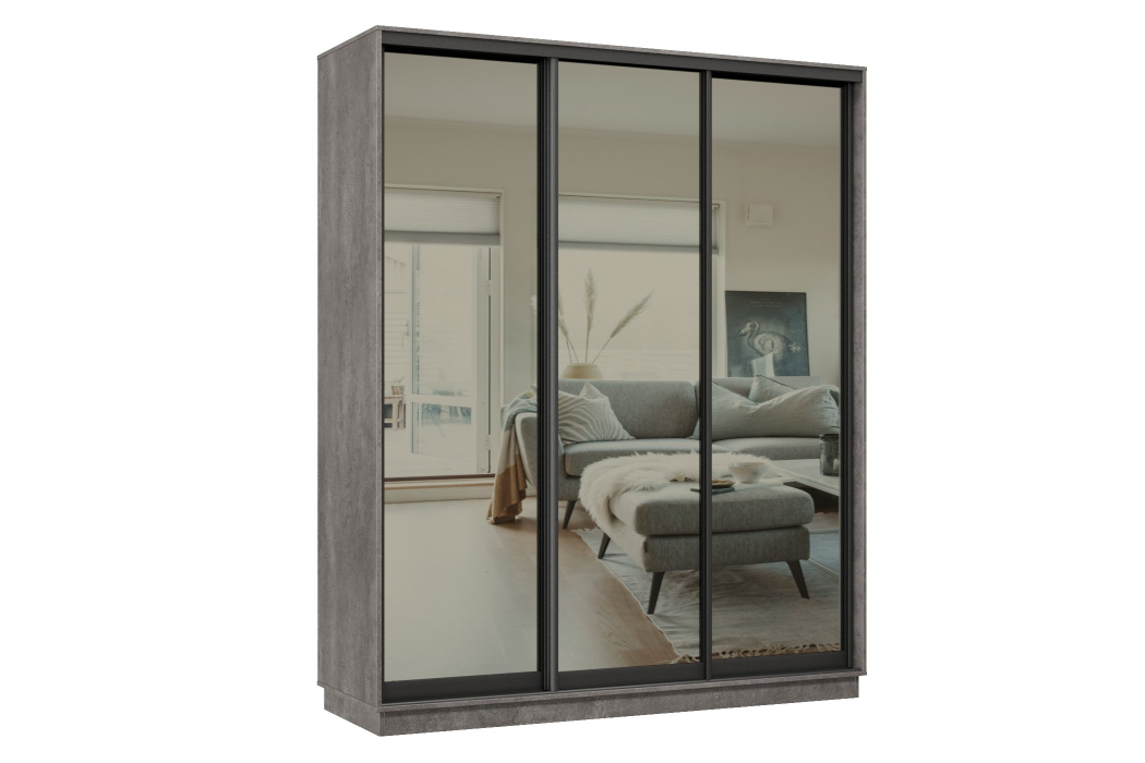Отзывы о Столплит Шкаф-купе Премьер 24 (01ЗГ;01ЗГ;01ЗГ) фасады зеркало графит/трёхдверный/Профиль чёрный муар Бетон