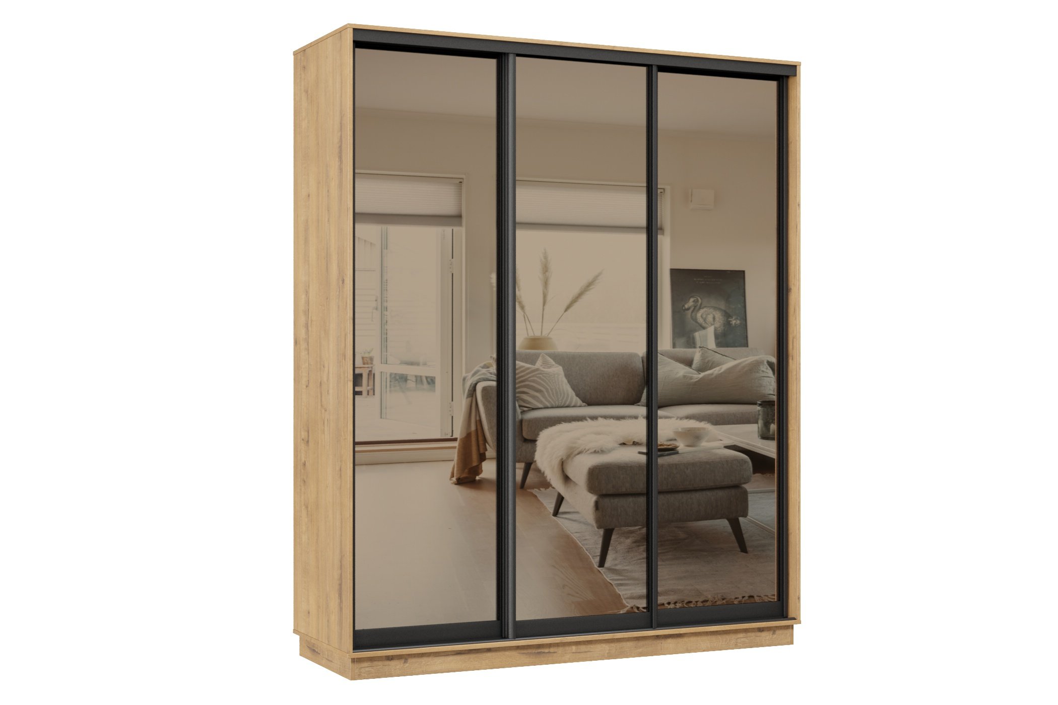 Отзывы о Столплит Шкаф-купе Премьер 24 (01ЗБ;01ЗБ;01ЗБ) фасады зеркало бронза/трёхдверный/Профиль чёрный муар Бунратти