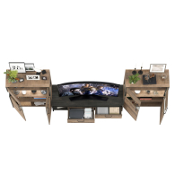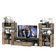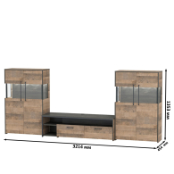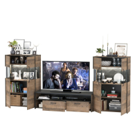 Брутальный декор и контрастная кромка, как и лицевая фурнитура придаёт мебели индустриальную эстетику. Комплектация состоит из тумбы под ТВ Трувор 13.70 и двух комодов с витриной Трувор 13.306. Тумба Трувор 13.70 оснащена широкой нишей сверху и 2 выдвижными ящиками и небольшой нишей снизу. Столешница тумбы имеет по центру кабель-канал, что значительно упрощает подключение техники и проблемы с проводами. Тумба под ТВ Трувор 13.70 имеет универсальную сборку, что позволяет расположить ящики как справа, так и слева. В комп. два комода с витринами Трувор 13.306. За распашными дверками каждого комода со стеклянными вставками расположены 3 полки. Центральная часть комодов имеет витрину с подсветкой. Светодиодная подсветка в витрине со стеклом — эффектно подчёркивает аксессуары. На нижних кромках опор комодов предусмотрены пластиковые подпятники для защиты поверхности пола от механических повреждений. Четырёхшарнирные петли дверей оснащены доводчиками, что обеспечивают повышенный комфорт и надёжность. Направляющие выдвижных ящиков скрытого монтажа оснащены доводчиками, что обеспечивают повышенный комфорт и надёжность. На нижних кромках опор предусмотрены пластиковые подпятники для защиты поверхности пола от механических повреждений. Металлические элементы делают эту мебель надёжной, аутентичной и функциональной. Выполнена мебель из ламинированной ДСП 16 мм и металлических элементов, торцы окромлены ПХВ плёнкой 0,4 мм. В производстве мебели использована современная фурнитура, отличающаяся высокой надёжностью и долговечностью. Поставляется в разобранном виде в надёжной упаковке, с комплектом сборочной фурнитуры и инструкцией по сборке.