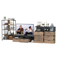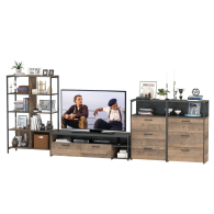 Тумба под телевизор с открытым стеллажом с полками и 2 комодами на три ящика Трувор - современная и практичная мебель в индустриальном стиле лофт.
