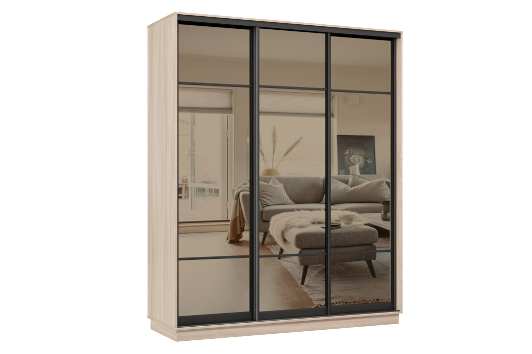 Отзывы о Столплит Шкаф-купе Премьер 24 (11ЗБ;11ЗБ;11ЗБ) фасады зеркало бронза/трёхдверный/Профиль чёрный муар Ясень шимо светлый