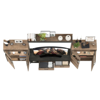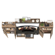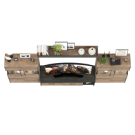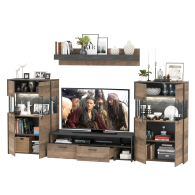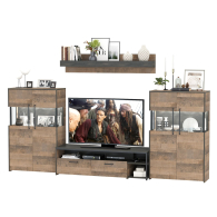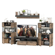 Брутальный декор и контрастная кромка, как и лицевая фурнитура придаёт мебели индустриальную эстетику. Комплектация состоит из тумбы под ТВ Трувор 13.70, полки навесной Трувор 15.60 и двух комодов с витриной Трувор 13.306. Тумба Трувор 13.70 оснащена широкой нишей сверху и 2 выдвижными ящиками и небольшой нишей снизу. Столешница тумбы имеет по центру кабель-канал, что значительно упрощает подключение техники и проблемы с проводами. Тумба под ТВ Трувор 13.70 имеет универсальную сборку, что позволяет расположить ящики как справа, так и слева. Классическая навесная открытая полка с задней панелью расположена над тумбой. Полка располагается по центру панели и оборудована бортиком. Полку Трувор 15.60 можно использовать как книжную, а также для размещения элементов декора, поделок и фоторгафий. Полка имеет с обратной стороны панели скрытые крепленния. Максимальная нагрузка на полку составляет 3 кг. В комп. два комода с витринами Трувор 13.306. За распашными дверками каждого комода со стеклянными вставками расположены 3 полки. Центральная часть комодов имеет витрину с подсветкой. Светодиодная подсветка в витрине со стеклом — эффектно подчёркивает аксессуары. Четырёхшарнирные петли дверей оснащены доводчиками, что обеспечивают повышенный комфорт и надёжность. Направляющие выдвижных ящиков скрытого монтажа оснащены доводчиками, что обеспечивают повышенный комфорт и надёжность. На нижних кромках опор предусмотрены пластиковые подпятники для защиты поверхности пола от механических повреждений. Металлические элементы делают эту мебель надёжной, аутентичной и функциональной. Выполнена мебель из ламинированной ДСП 16 мм и металлических элементов, торцы окромлены ПХВ плёнкой 0,4 мм. В производстве мебели использована современная фурнитура, отличающаяся высокой надёжностью и долговечностью. Поставляется в разобранном виде в надёжной упаковке, с комплектом сборочной фурнитуры и инструкцией по сборке.