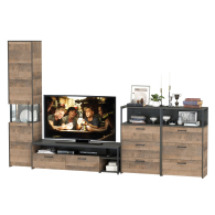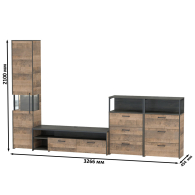 Пенал-витрина с подсветкой с тумбой для телевизора и два комода Трувор - современная и практичная мебель в индустриальном стиле лофт.