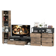 Брутальный декор и контрастная кромка, как и лицевая фурнитура придаёт мебели индустриальную эстетику. Комплектация состоит из тумбы под ТВ Трувор 13.70, двух комодов с ящиками Трувор 13.307.02 и шкафа-пенала с витриной Трувор 13.205. Тумба Трувор 13.70 оснащена широкой нишей сверху и 2 выдвижными ящиками и небольшой нишей снизу. Столешница тумбы имеет по центру кабель-канал, что значительно упрощает подключение техники и проблемы с проводами. Тумба под ТВ Трувор 13.70 имеет универсальную сборку, что позволяет расположить ящики как справа, так и слева. Аккуратный комод оснащен 3 выдвижными ящиками и открытой нишей сверху. В комп. 2 ед.. Шкаф-пенал Трувор 13.205 за распашной дверкой со стеклянной вставкой расположены 5 полочек, 2 из которых съемные. Пенал имеет витрину с подсветкой. Светодиодная подсветка в витрине со стеклом — эффектно подчёркивает аксессуары. Шкаф-пенал с витриной имеет универсальную сборку, сторону открывания двери Вы определяете при сборке. Четырёхшарнирные петли двери оснащены доводчиками, что обеспечивают повышенный комфорт и надёжность. Направляющие выдвижных ящиков скрытого монтажа оснащены доводчиками, что обеспечивают повышенный комфорт и надёжность. На нижних кромках опор предусмотрены пластиковые подпятники для защиты поверхности пола от механических повреждений. Металлические элементы делают эту мебель надёжной, аутентичной и функциональной. Выполнена мебель из ламинированной ДСП 16 мм и металлических элементов, торцы окромлены ПХВ плёнкой 0,4 мм. В производстве мебели использована современная фурнитура, отличающаяся высокой надёжностью и долговечностью. Поставляется в разобранном виде в надёжной упаковке, с комплектом сборочной фурнитуры и инструкцией по сборке.
