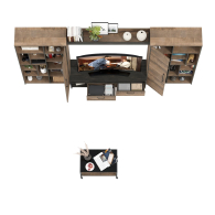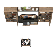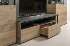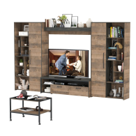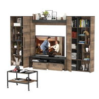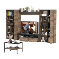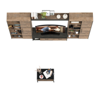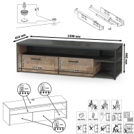 Брутальный декор и контрастная кромка, как и лицевая фурнитура придаёт мебели индустриальную эстетику. Комплектация состоит из тумбы под ТВ Трувор 13.70, полки навесной Трувор 15.60, двух шкафов-стеллажей Трувор 13.206 и стола журнального Трувор 12.19. Тумба Трувор 13.70 оснащена широкой нишей сверху и 2 выдвижными ящиками и небольшой нишей снизу. Столешница тумбы имеет по центру кабель-канал, что значительно упрощает подключение техники и проблемы с проводами. Тумба под ТВ Трувор 13.70 имеет универсальную сборку, что позволяет расположить ящики как справа, так и слева. Классическая навесная открытая полка с задней панелью расположена над тумбой. Полка располагается по центру панели и оборудована бортиком. Полку Трувор 15.60 можно использовать как книжную, а также для размещения элементов декора, поделок и фоторгафий. Полка имеет с обратной стороны панели скрытые крепленния. Максимальная нагрузка на полку составляет 3 кг. Шкаф-стеллаж состоит из двух отделений - с одной стороны с дверкой, с другой с открытыми полками. В комп. 2 шкафа-стеллажа. За распашной дверкой расположены 4 полки, дверь оборудована широкой ручкой. Открытое отделение с открытыми имеет сверху и снизу большие ниши и по центру 6 ниш поменьше. Шкаф-стеллаж Трувор 13.206 имеет универсальную сборку, сторону открывания двери и ее расположение Вы определяете при сборке. Четырёхшарнирные петли двери оснащены доводчиками, что обеспечивают повышенный комфорт и надёжность. Компактный журнальный столик с прямоугольной столешницей и нижней полкой. На столещнице имется накладка из тонированного стекла. Стол журнальный Трувор 12.19 установлен на колесные опоры, которые придают ему желанную мобильность. Металлические стойки с колесными опорами. Направляющие выдвижных ящиков скрытого монтажа оснащены доводчиками, что обеспечивают повышенный комфорт и надёжность. На нижних кромках опор предусмотрены пластиковые подпятники для защиты поверхности пола от механических повреждений. Металлические элементы делают эту мебель надёжной, аутентичной и функциональной. Выполнена мебель из ламинированной ДСП 16 мм и металлических элементов, торцы окромлены ПХВ плёнкой 0,4 мм. В производстве мебели использована современная фурнитура, отличающаяся высокой надёжностью и долговечностью. Поставляется в разобранном виде в надёжной упаковке, с комплектом сборочной фурнитуры и инструкцией по сборке.