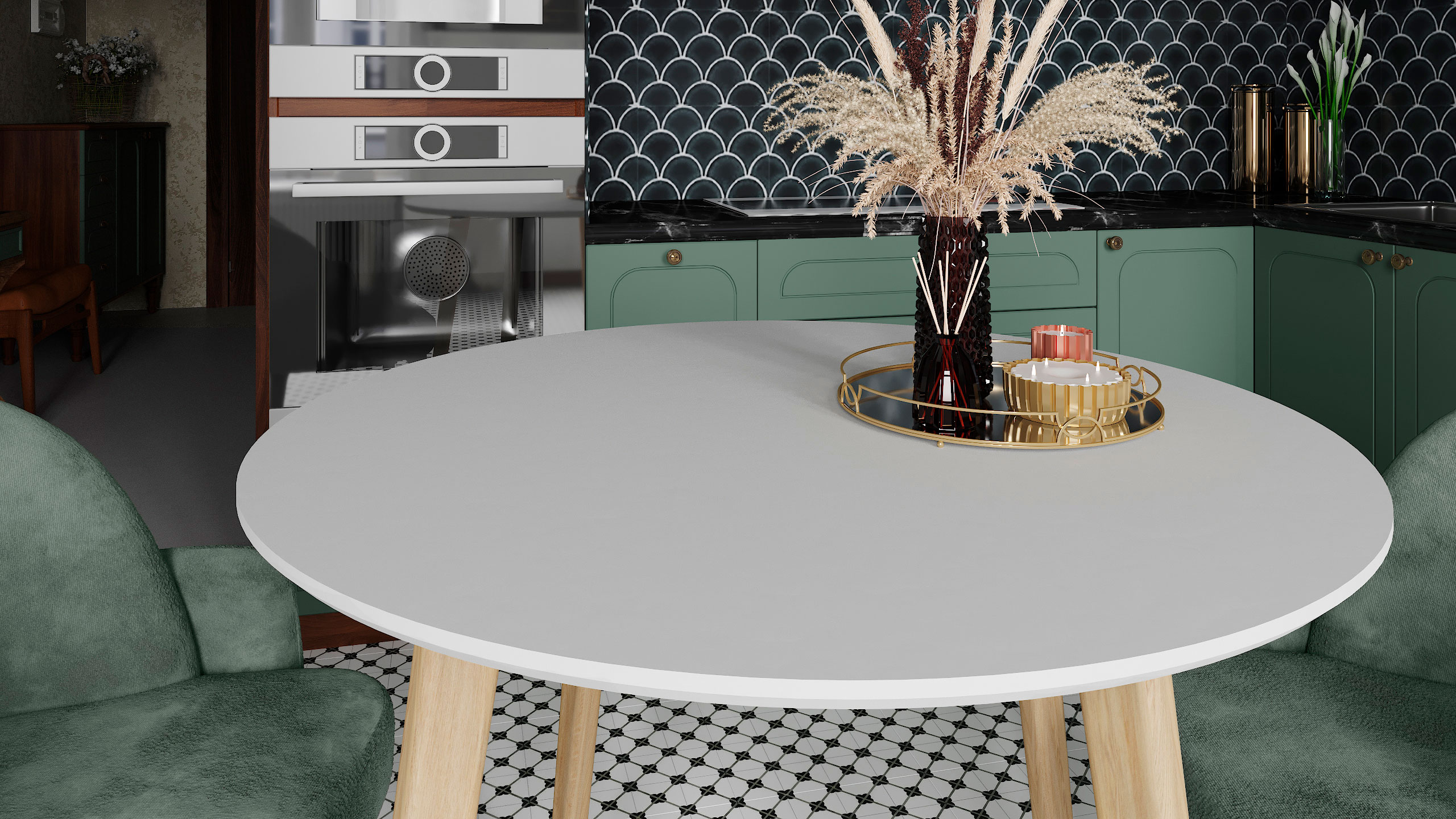 Стол Морган с круглой столешницей безусловно будет центром композиции интерьера помещения и дизайнерским акцентом.