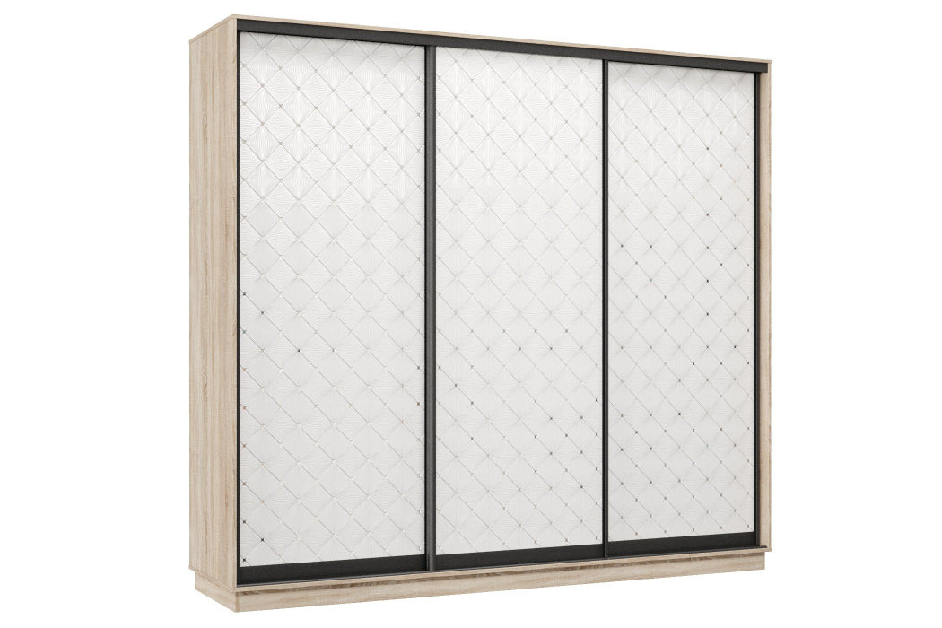 Шкаф-купе Премьер 57 (01РБ;01РБ;01РБ) фасады ромб белый/трёхдверный/Профиль чёрный муар (Дуб сонома)