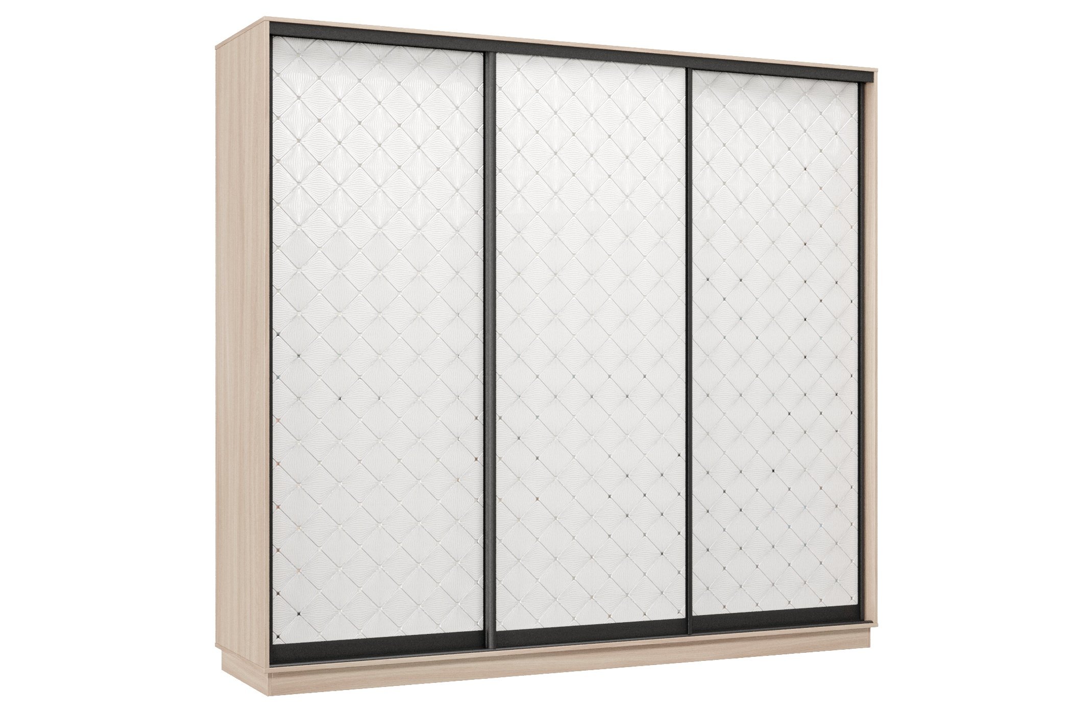 Отзывы о Столплит Шкаф-купе Премьер 58 (01РБ;01РБ;01РБ) фасады ромб белый/трёхдверный/Профиль чёрный муар Ясень шимо светлый