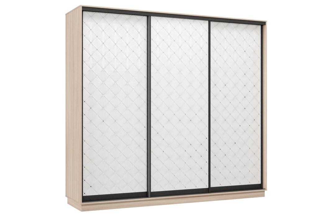 Шкаф-купе Премьер 58 (01РБ;01РБ;01РБ) фасады ромб белый/трёхдверный/Профиль чёрный муар (Ясень шимо светлый)