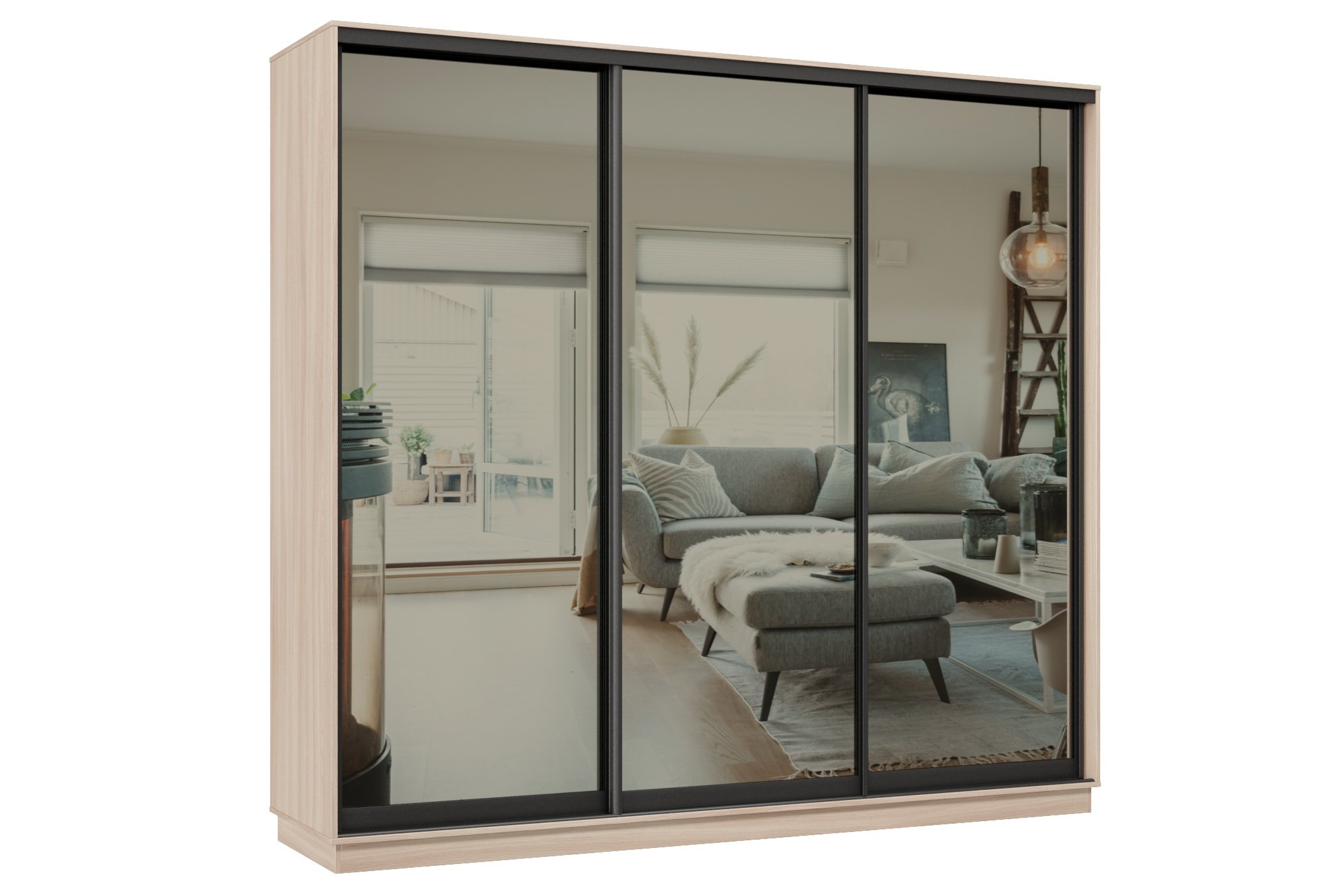 Отзывы о Столплит Шкаф-купе Премьер 58 (01ЗГ;01ЗГ;01ЗГ) фасады зеркало графит/трёхдверный/Профиль чёрный муар Ясень шимо светлый
