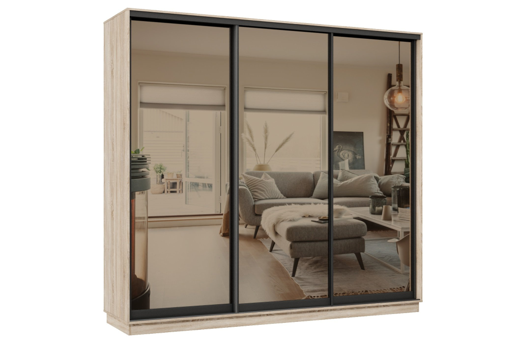 Отзывы о Столплит Шкаф-купе Премьер 60 (01ЗБ;01ЗБ;01ЗБ) фасады зеркало бронза/трёхдверный/Профиль чёрный муар Дуб сонома