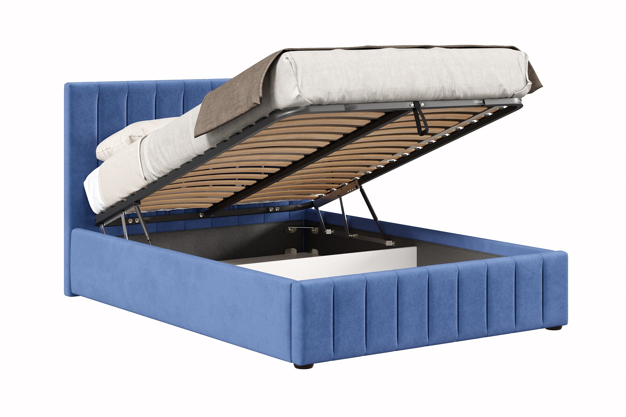 Кровать Верона 1400 с подъёмным механизмом, велюр (Синий)