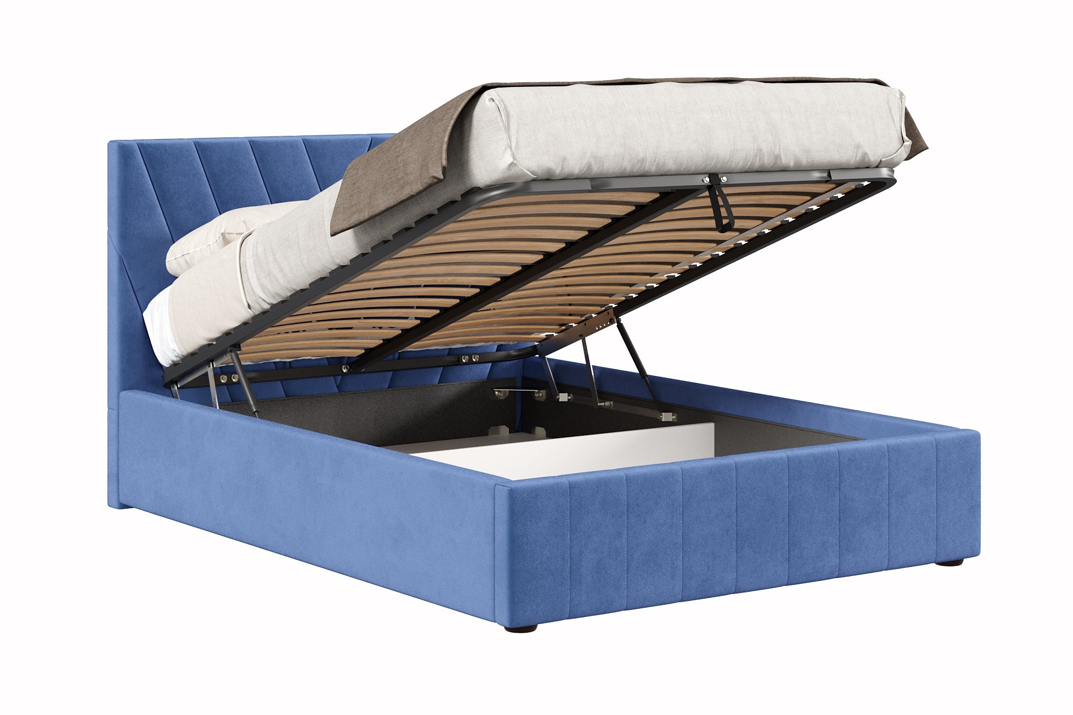 Кровать Палермо 1400 с подъёмным механизмом, велюр (Синий)