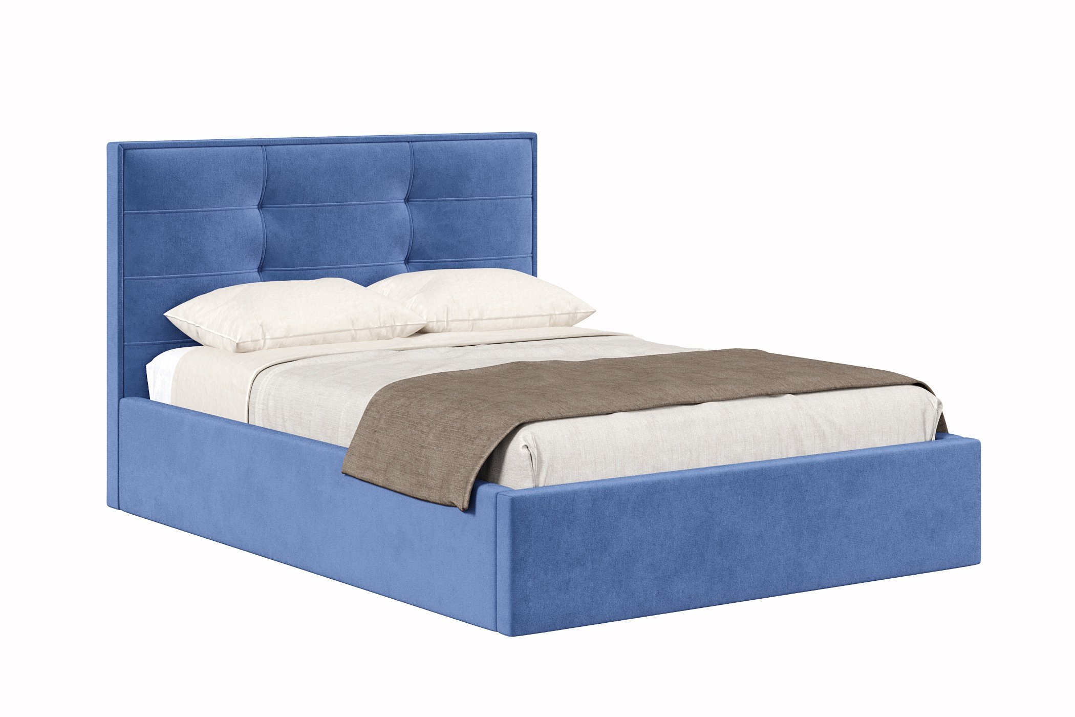 Кровать Римини 1400 с подъёмным механизмом, велюр (Синий)