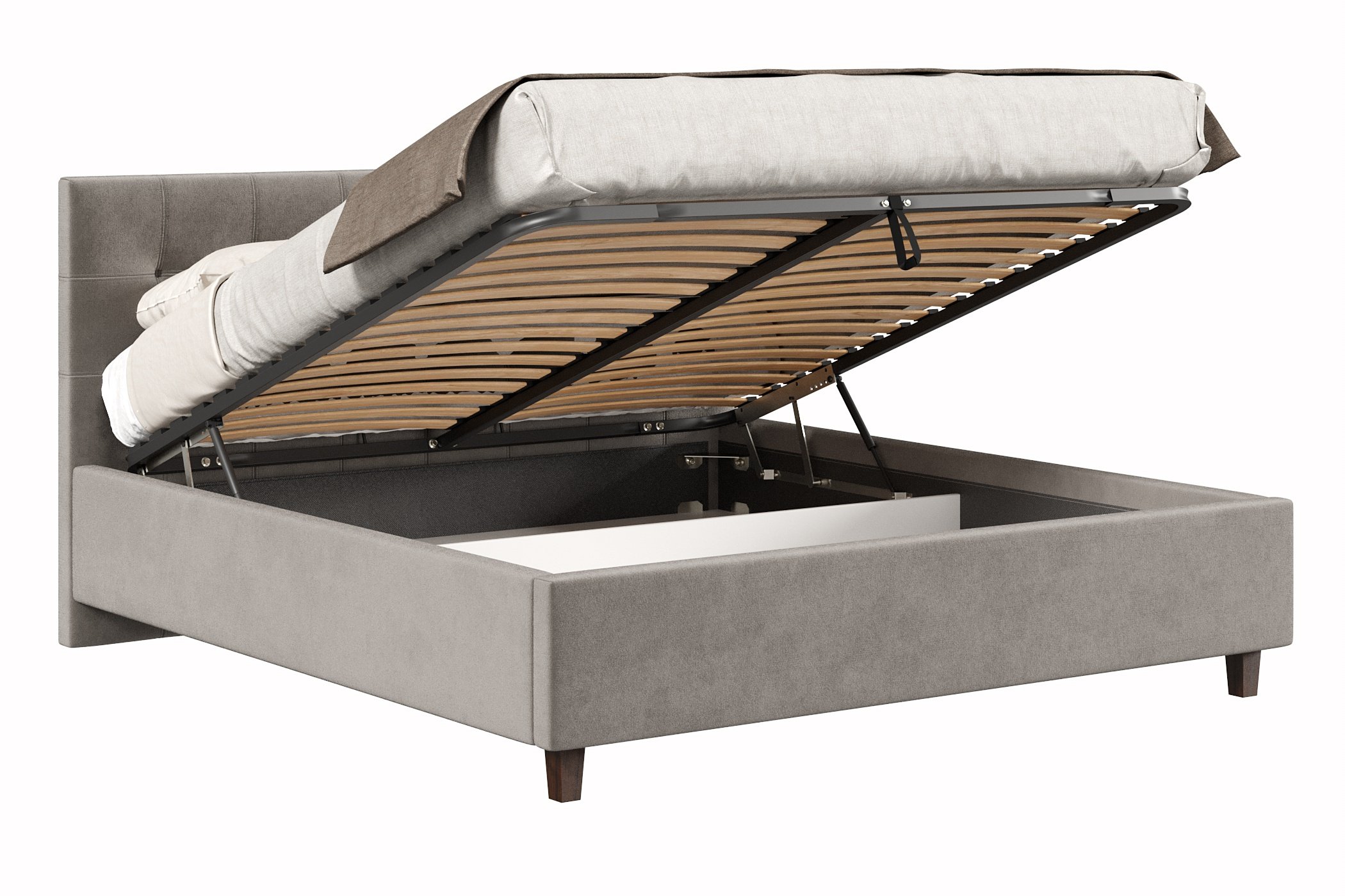 Кровать имеет нишу для хранения разных вещей, это очень удобно, если пространство в комнате не дает возможность поставить дополнительные шкафчики, либо полки.