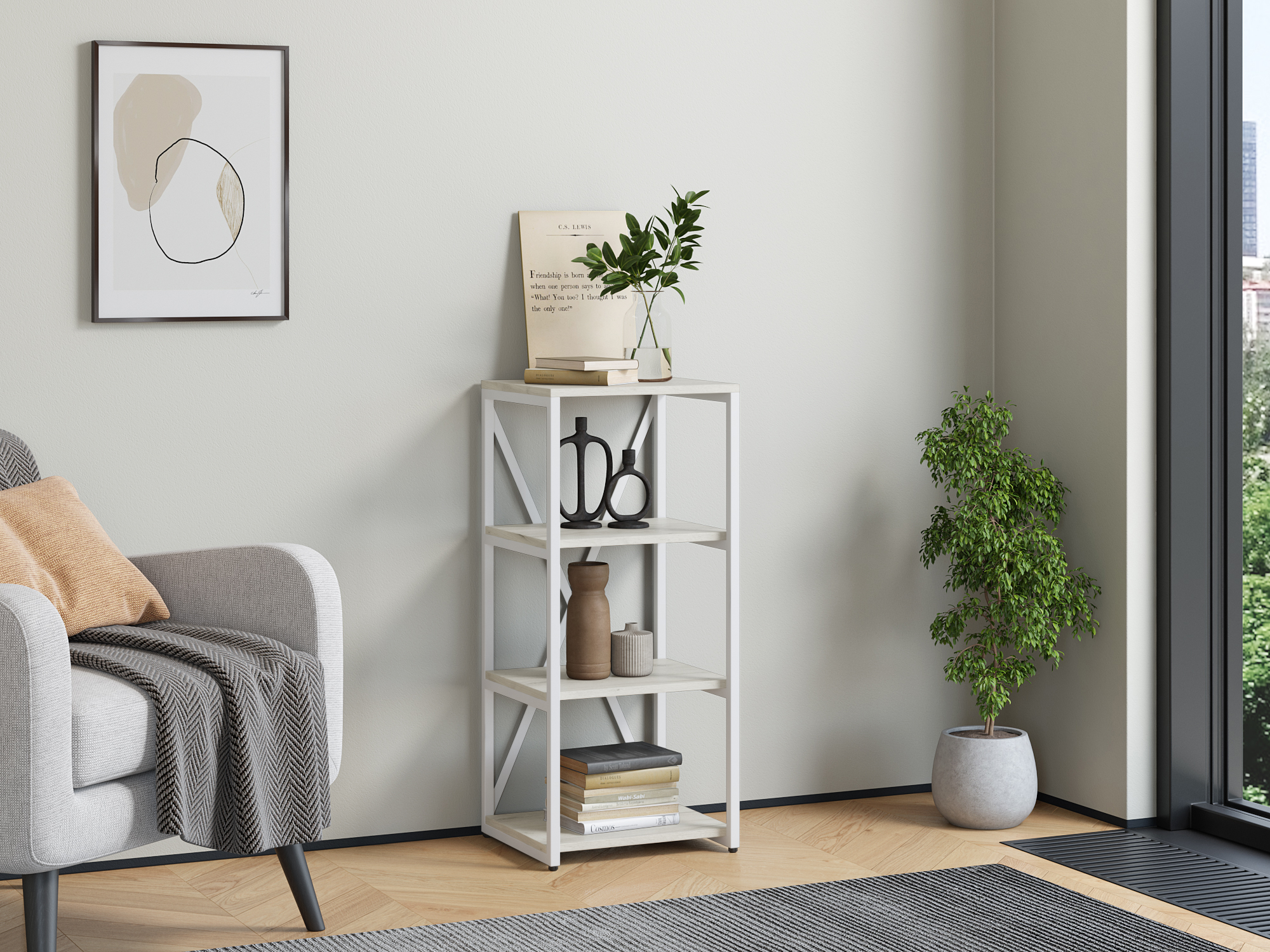 Стеллаж Айсберг Лофт 40/4 Белый (Дуб крафт белый)