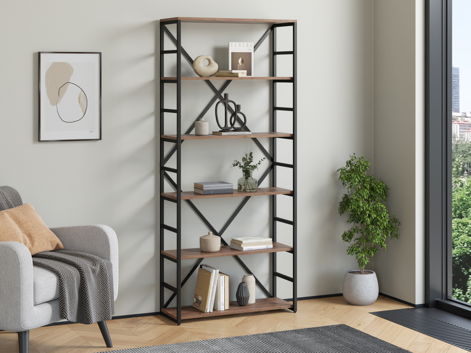 Отзывы о Столплит Стеллаж Айсберг Лофт 80/6-2 Черный Дуб/крафт/табак