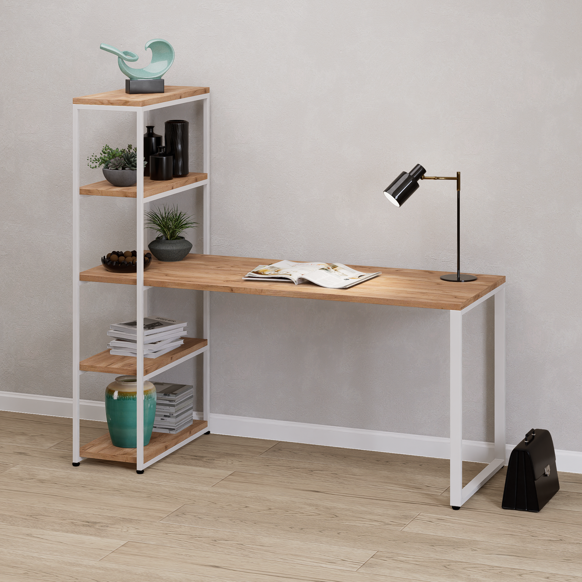 Стол-Стеллаж Айсберг Лофт 01 Белый (Дуб/крафт/табак)