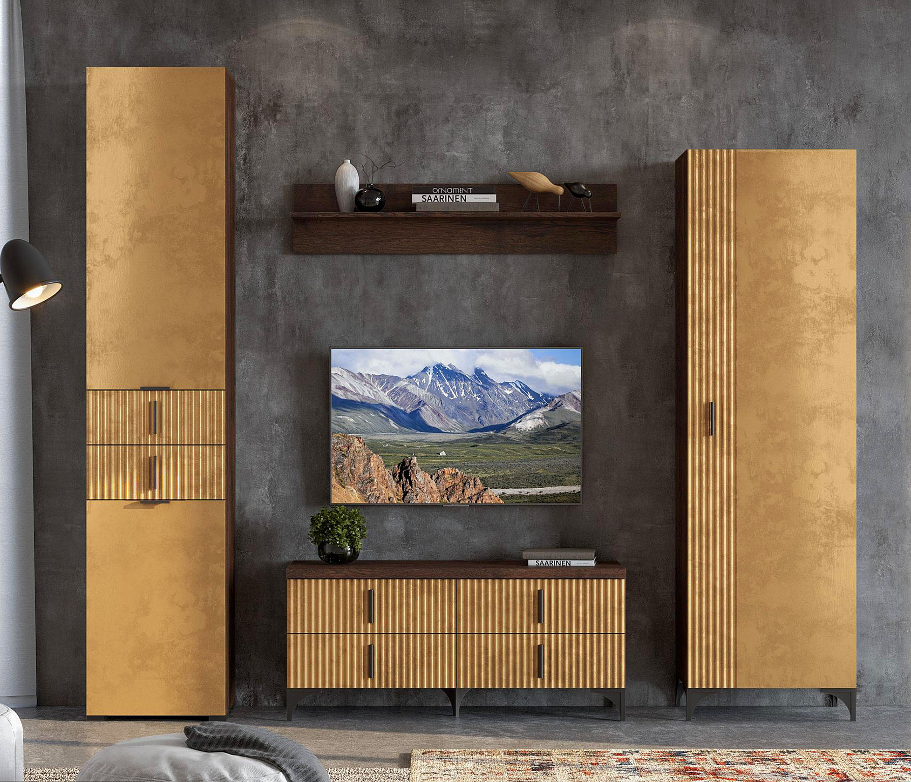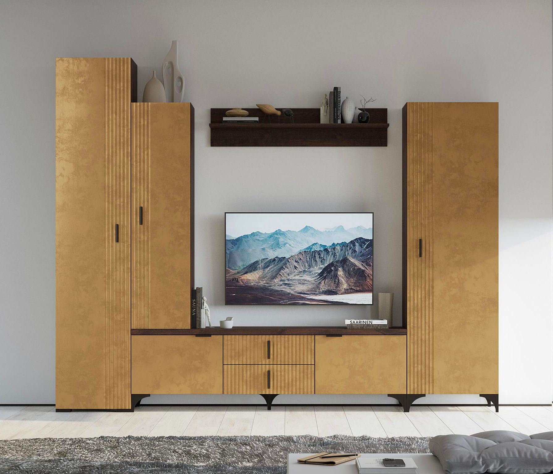 Нежность и насыщенность — такое сочетание вызывает гостиная Шер. Модули смотрятся объемно со множеством приятных деталей. Роскошные по цветовой палитре материалы, в сочетании с естественными древесными текстурами придают вашему дому атмосферу спокойствия, манящего уюта и безмятежного настроения.