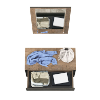 Брутальный декор и контрастная кромка, как и лицевая фурнитура придаёт мебели индустриальную эстетику. Комплектация состоит из тумбы для обуви с сиденьем Трувор 13.241.03 и зеркала навесного Трувор 15.30. Аккуратная тумба для обуви Трувор 13.241.03 на 3 пары обуви с выдвижным ящиком для хранения различных принадлежностей и мелких предметов. Вместо боковых стоек использованы металлические опоры. Снизу металлическая подставка для обуви. Тумбу можно использовать в качестве подставки для сумок или банкетки для переобувания. Металлические опоры и подставка для обуви делают эту мебель надёжной, аутентичной и функциональной. Направляющие выдвижного ящика скрытого монтажа оснащены доводчиками, что обеспечивает повышенный комфорт и надёжность. Классическое прямоугольное навесное зеркало Трувор 15.30 на панели из ЛДСП. Согласно Ваших запросов при установке зеркало возможно повесить как горизонтально, так и вертикально. Размер зеркала позволяет ему стать частью множества композиций. Зеркало 15.30 имеет декоративный скос фаски под углом по всему периметру полотна. Скрытые крепежи на задней поверхности и предусматривают выбор расположения зеркала.